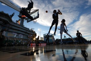 ET, ESPN) on Friday aboard the USS Abraham Lincoln in the programs second game played on an aircraft carrier. 1 in the 2023-24 men's Way-Too-Early Top 25, UConn celebrated in return to 'basketball country', Purdue C Zach Edey honored with Wooden Award, Ex-Tide F Miles pleads not guilty in shooting case, UConn will headline Maui Invitational next season, Duke freshman Lively says he'll enter NBA draft, Huskies open as betting favorite to repeat title, Wisconsin's Wahl says he's back for fifth season, Ex-Hoosiers coach Knight released from hospital, The evolution of the Big East sets up a basketball revolution, '5 OF THEM THANGS': Numbers and reactions from UConn's title win. There will be no tickets for the general public, with seating limited to invited military members and some team allotments. But a men's game between Ohio State and Marquette scheduled for the evening never started because of condensation on the court. Those discussions turned into a finalized agreement on Wednesday. The Bulldogs lost No.